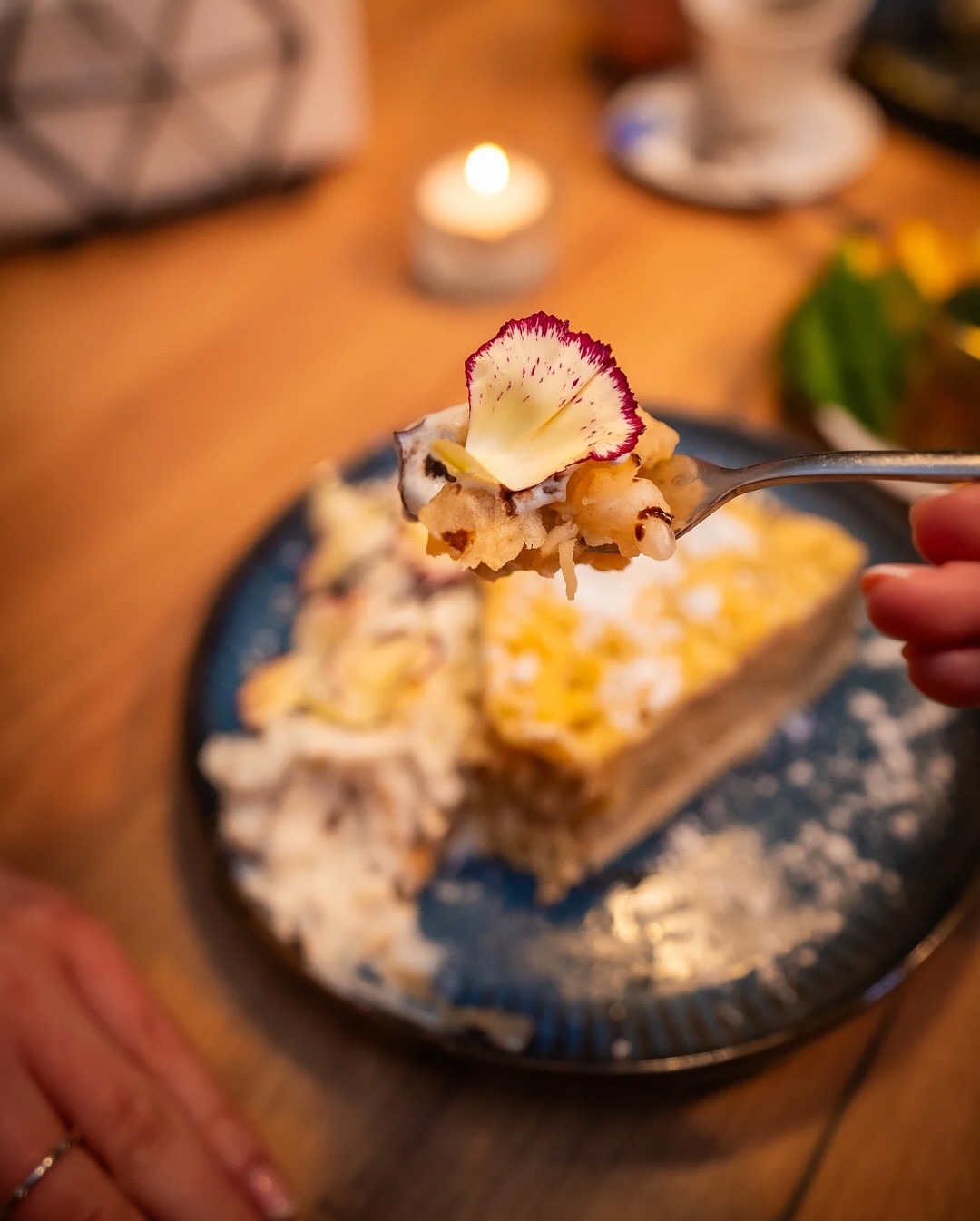 Własnego wypieku, podawana na ciepło z bitą śmietaną. -